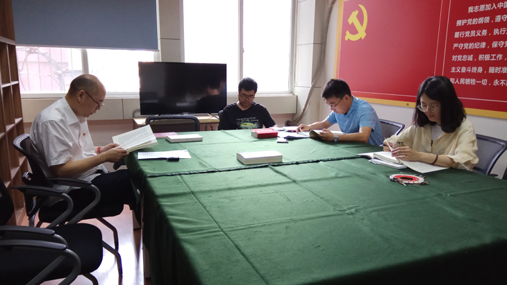 2019年7月5日,黨員六支部在黨員活動(dòng)室開(kāi)展“七一”集中學(xué)習(xí)。支部書(shū)記岳立帶領(lǐng)大家學(xué)習(xí)了《習(xí)近平新時(shí)代中國(guó)特色社會(huì)主義思想學(xué)習(xí)綱要》的部分篇章,并對(duì)3個(gè)問(wèn)題進(jìn)行了討論。