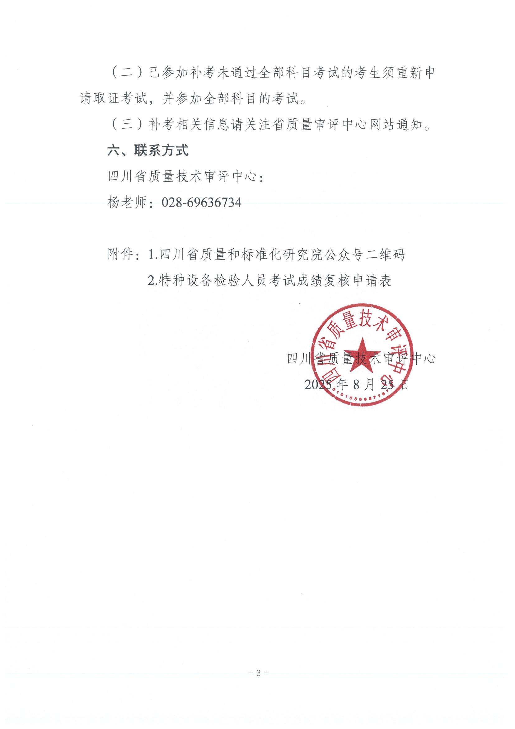 四川省質(zhì)量技術(shù)審評中心關(guān)于2025年四川省特種設(shè)備檢驗人員資格認定電梯檢驗員考試安排的通知