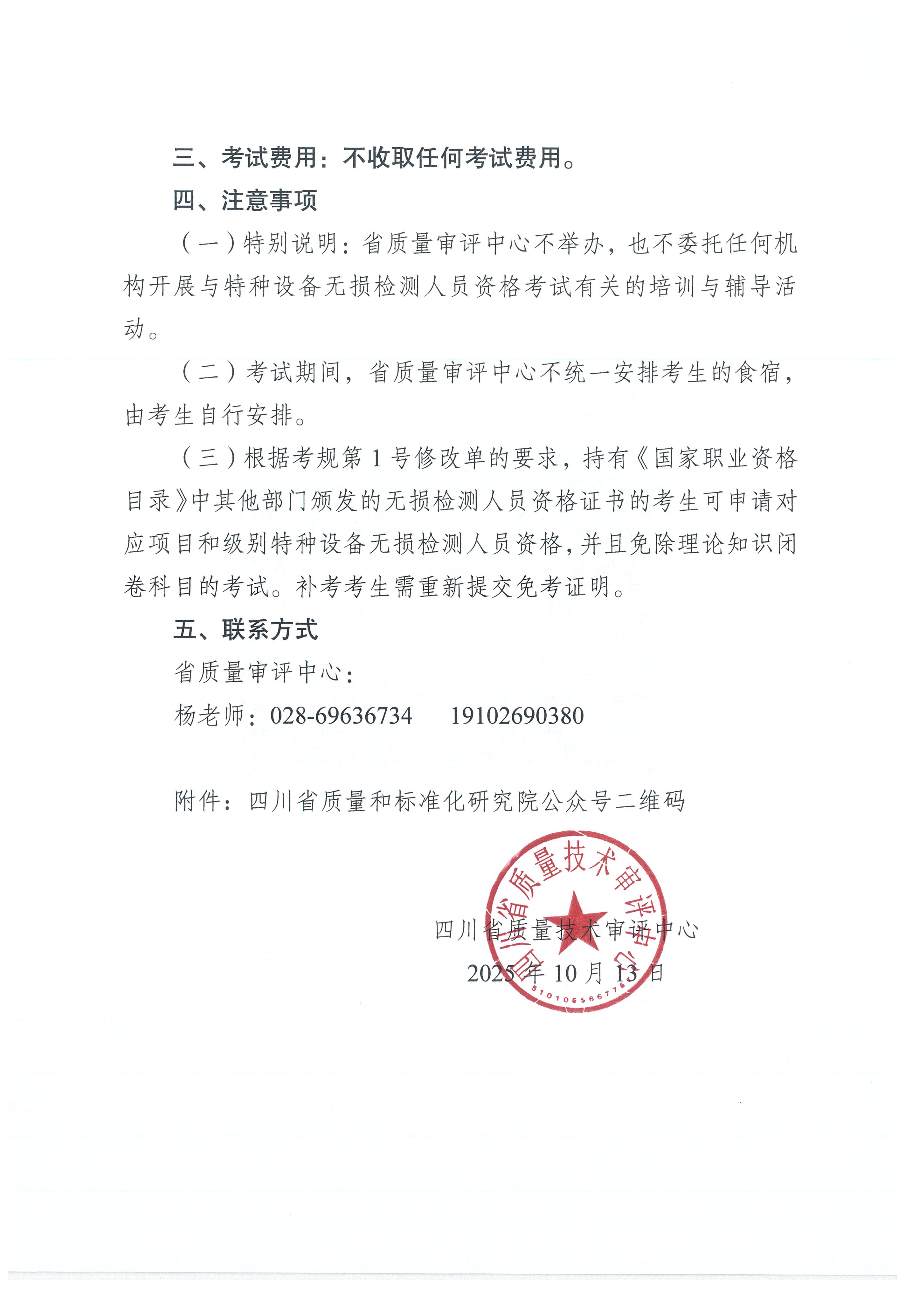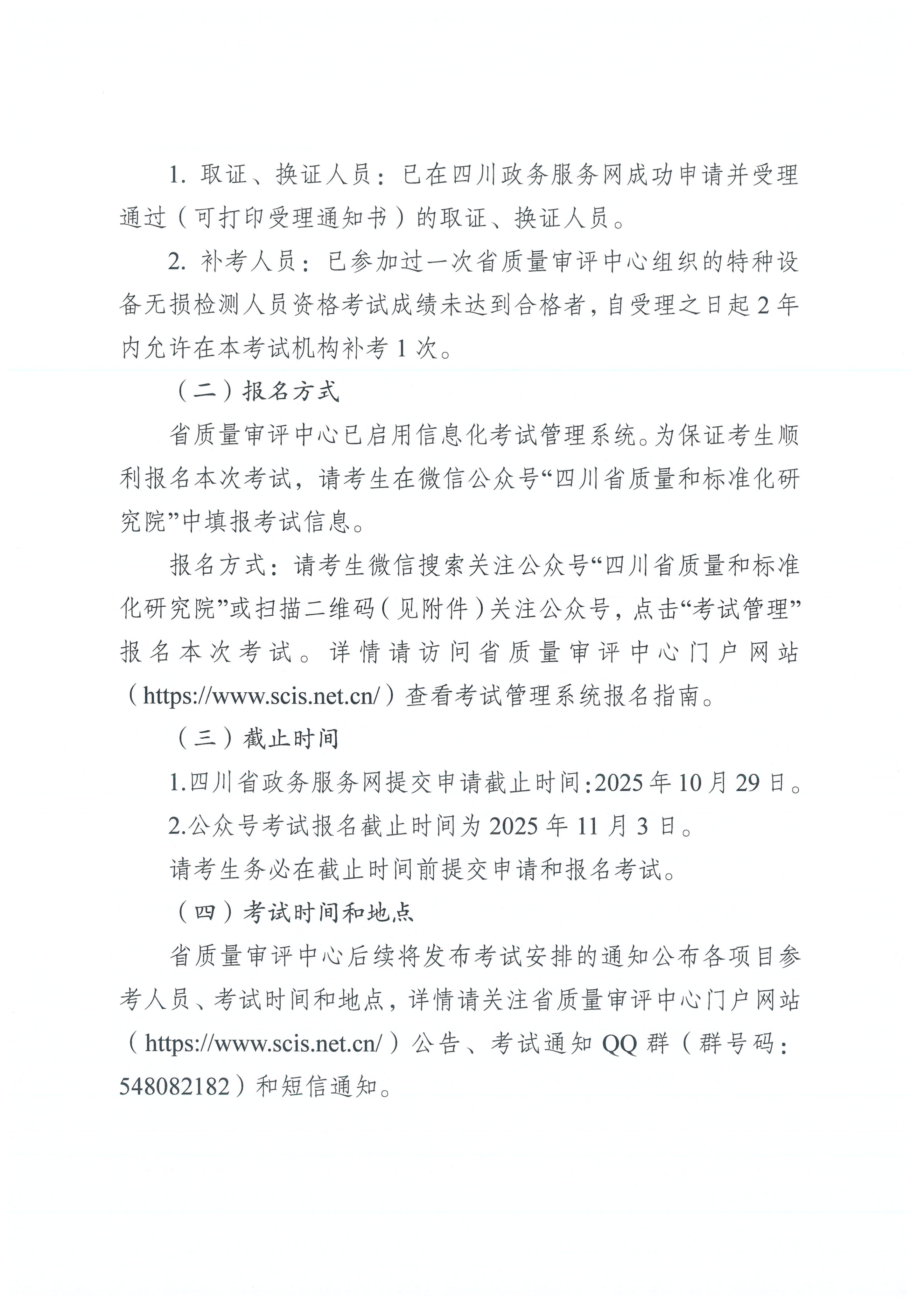 四川省質(zhì)量技術(shù)審評中心關(guān)于2025年四川省特種設(shè)備無損檢測人員資格考試(第二期)報名的通知