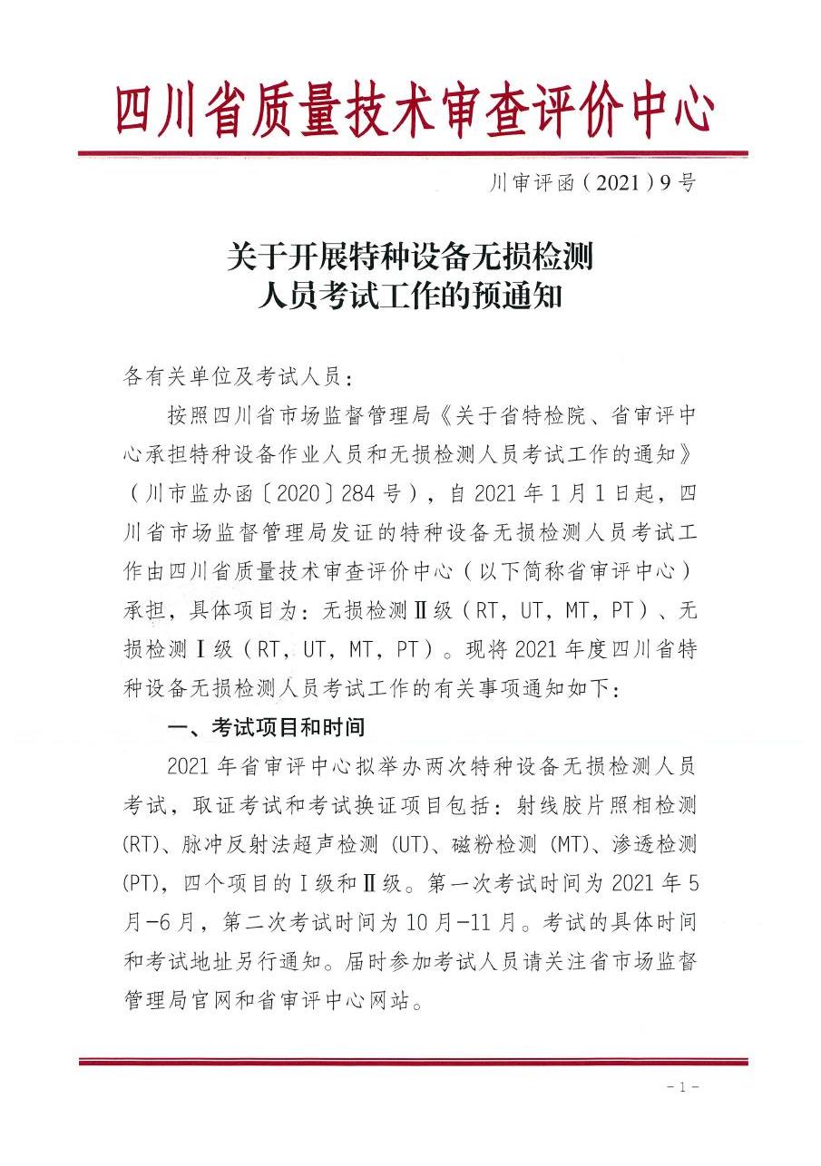 關(guān)于開(kāi)展特種設(shè)備無(wú)損檢測(cè)人員考試工作的預(yù)通知