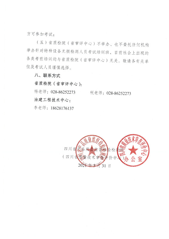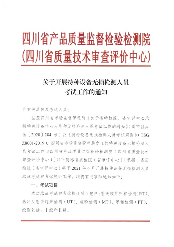 關(guān)于2021年四川省特種設(shè)備無(wú)損檢測(cè)人員考試(第一期)考試結(jié)果的通知