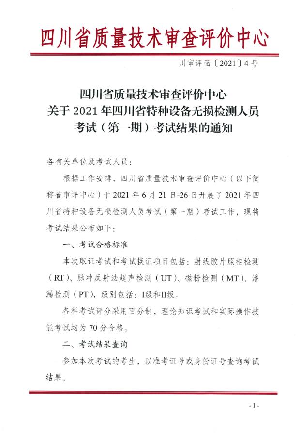 關(guān)于2021年四川省特種設(shè)備無(wú)損檢測(cè)人員考試(第一期)考試結(jié)果的通知
