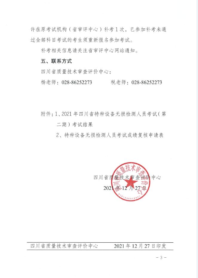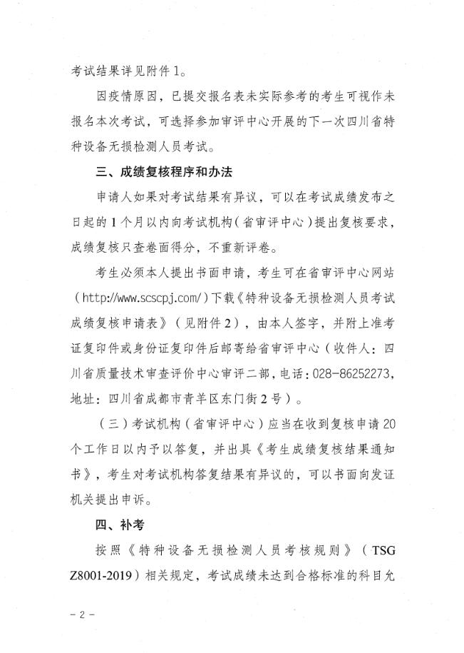 關(guān)于2021年四川省特種設(shè)備無損檢測人員考試(第二期)考試結(jié)果的公示