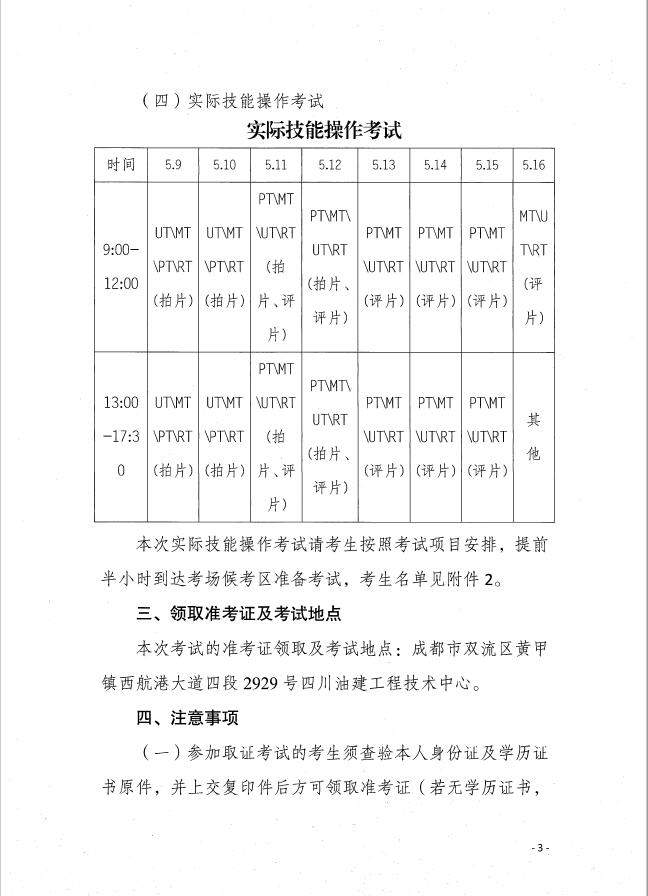 關于開展特種設備無損檢測人員考試(第三期)工作的通知