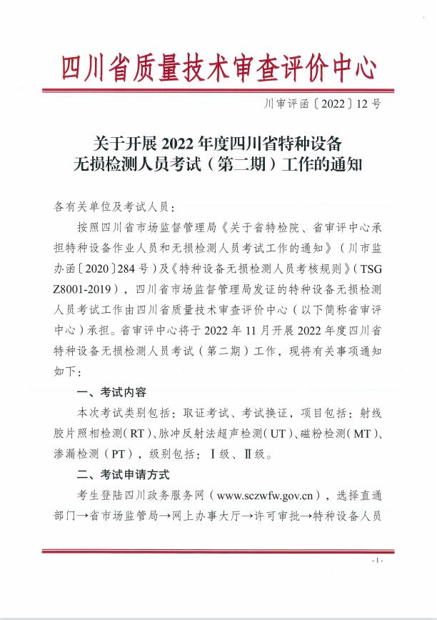 關(guān)于2022年四川省特種設(shè)備無損檢測人員考試(第二期)考試安排的通知)