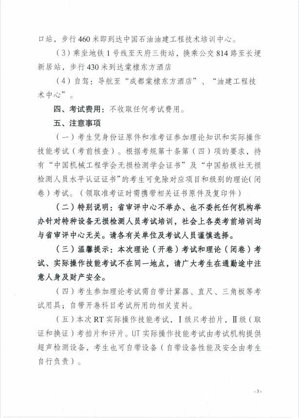 關(guān)于2023年度四川省特種設(shè)備無損檢測人員考試(第一期)考試安排的通知