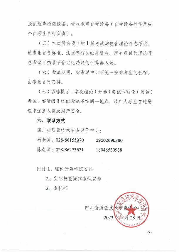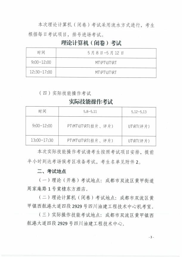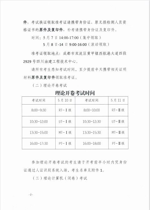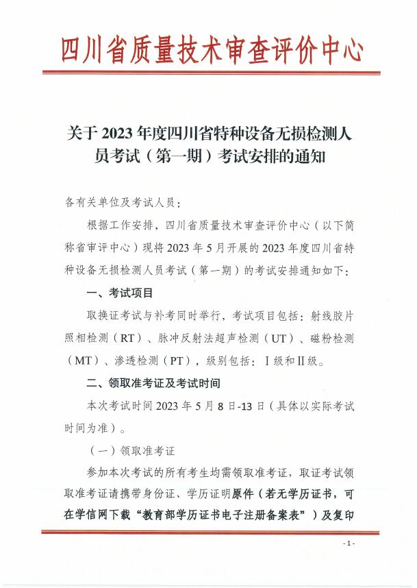 關于2023年度四川省特種設備無損檢測人員考試(第一期)考試安排的通知