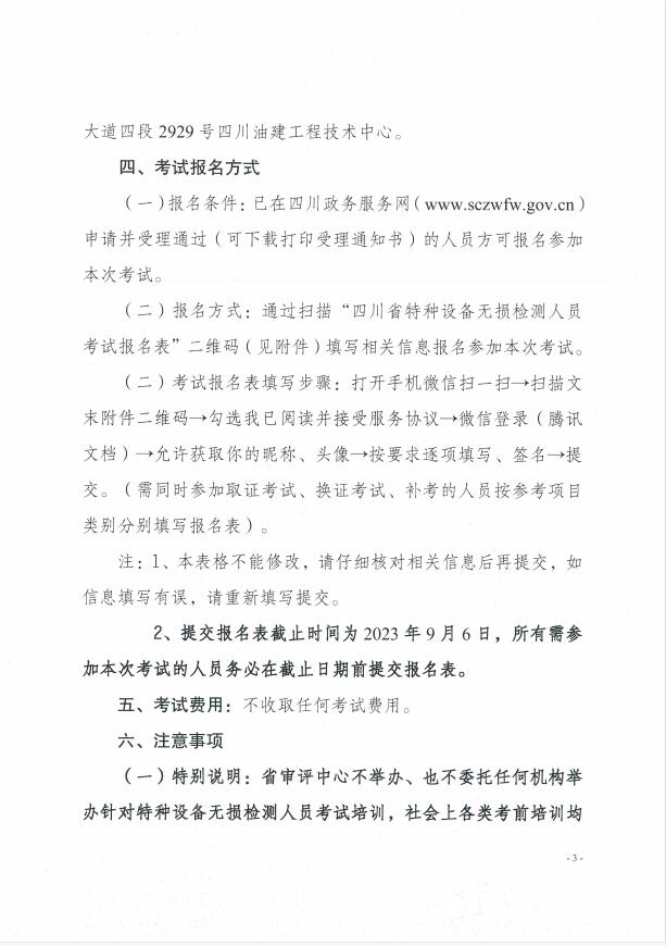 關(guān)于2023年四川省特種設(shè)備無損檢測人員考試(第二期)考試安排的通知