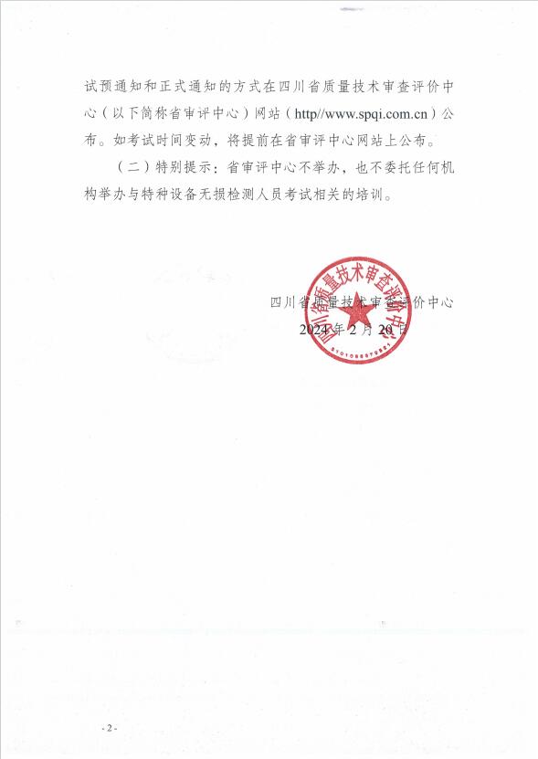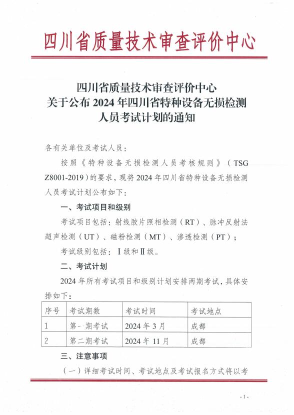 關(guān)于2024年四川省特種設(shè)備無損檢測人員考試(第一期)報名的通知