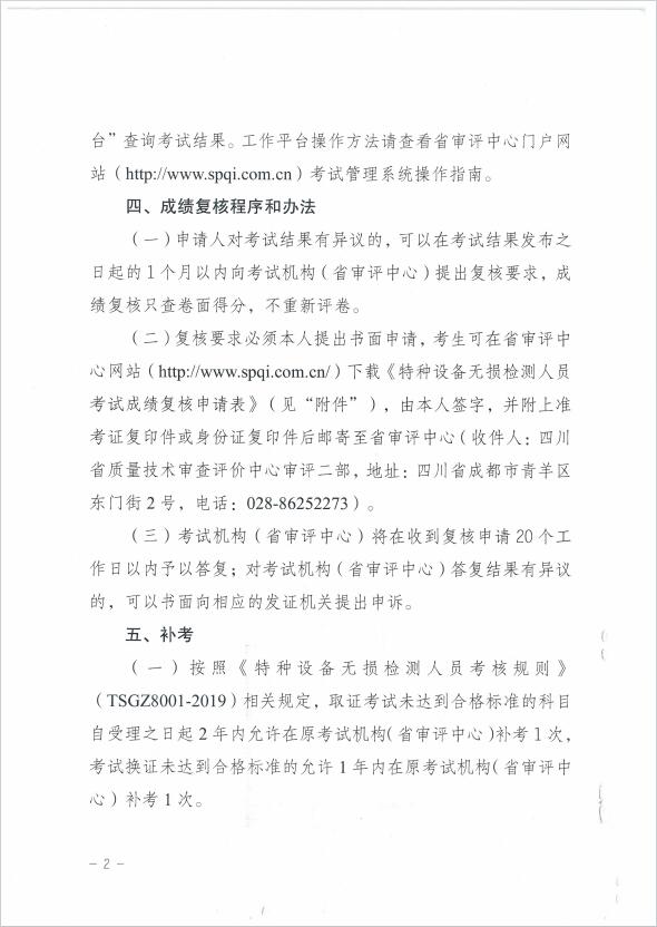 關于2024年四川省特種設備無損檢測人員資格考試(第二期)安排的通知