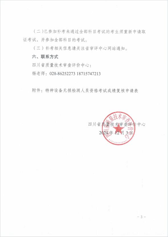 四川省質量技術審評中心關于公布2025年四川省特種設備無損檢測人員考試計劃的通知