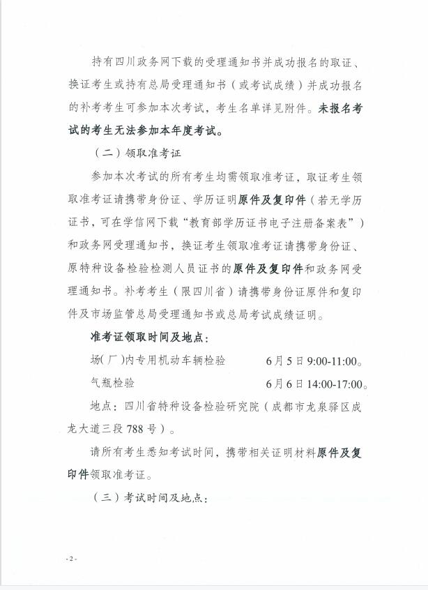 2023年四川省特種設備檢驗人員資格認定場(廠)內專用機動車輛檢驗員、氣瓶檢驗員考試工作的通知