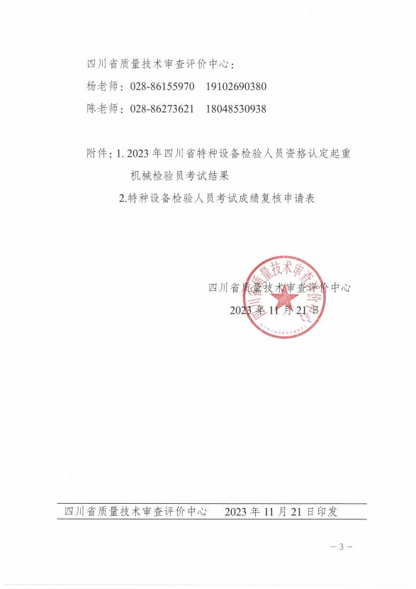 關(guān)于2023年四川省特種設(shè)備檢驗人員資格認定起重機械檢驗員考試結(jié)果的公示