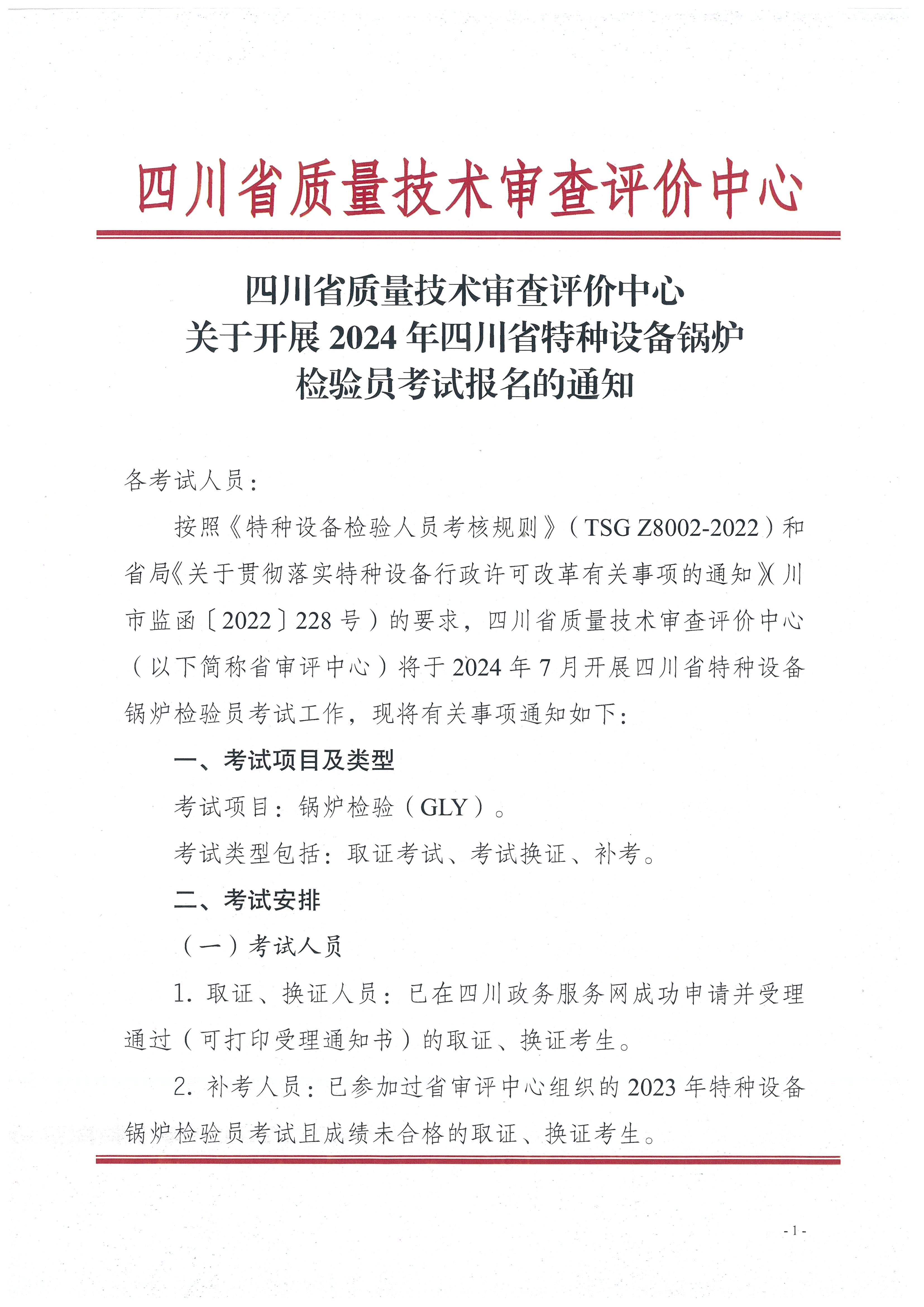 關(guān)于開(kāi)展2024年四川省特種設(shè)備鍋爐檢驗(yàn)員考試報(bào)名的通知