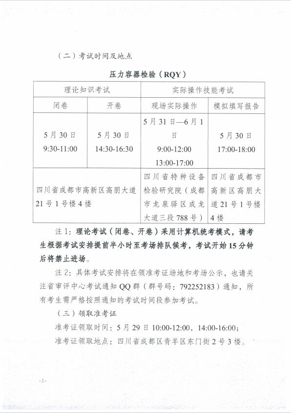 關(guān)于公布2024年四川省特種設(shè)備檢驗(yàn)人員資格認(rèn)定壓力容器檢驗(yàn)員考試安排的通知