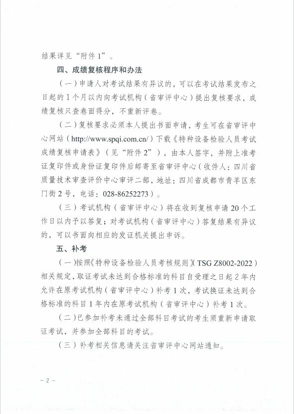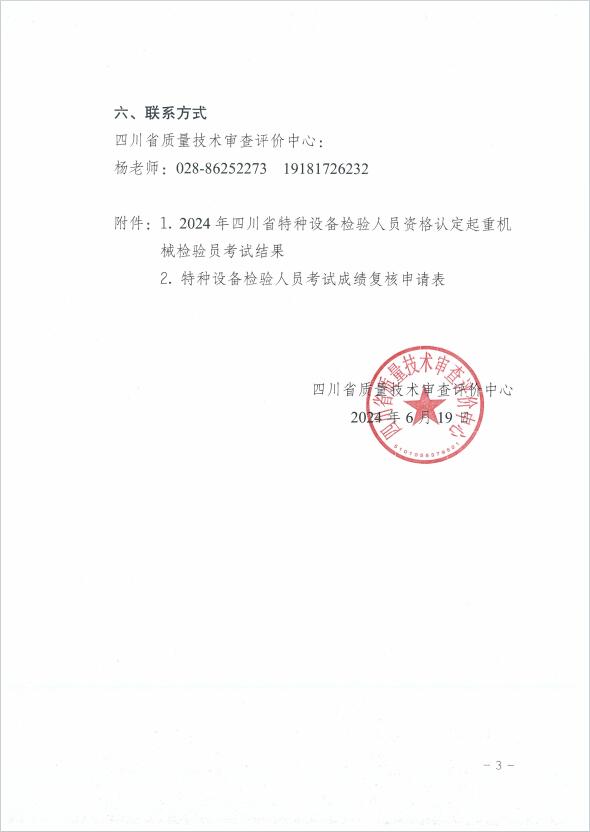 關(guān)于2024年四川省特種設(shè)備檢驗(yàn)人員資格認(rèn)定起重機(jī)檢驗(yàn)員考試結(jié)果的公示