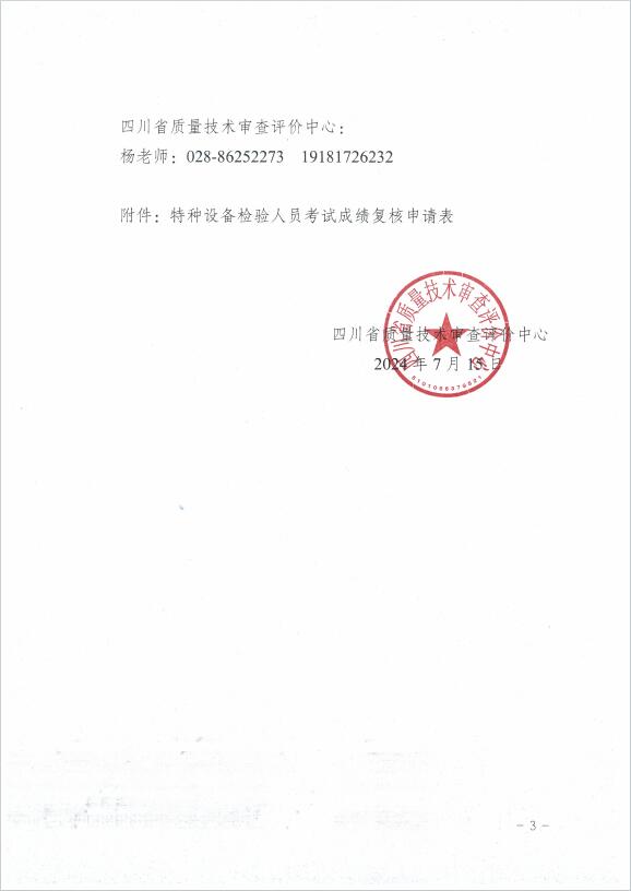 關于2024年四川省特種設備檢驗人員資格認定鍋爐檢驗員考試結(jié)果查詢的通知